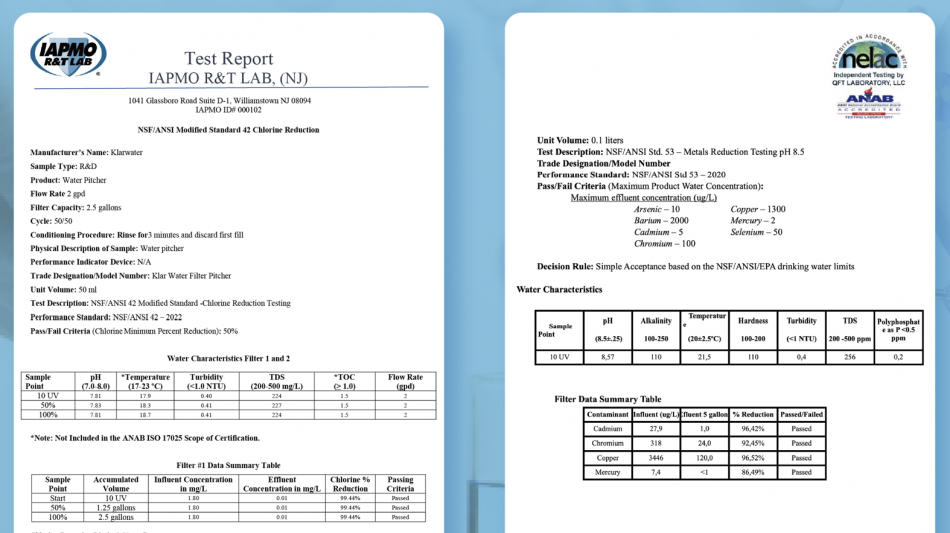 Independent Laboratory Testing Reports on Klar Water Filter Performance