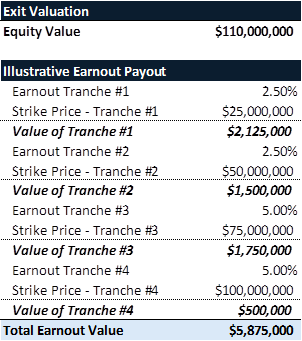 Below is an example calculation of the Company's Earnout proceeds in a Sale Event where New Parent's equity value is $110 million.