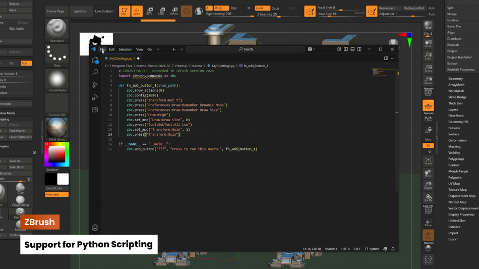 For sculptors and 3D modelers, ZBrush adds creative freedom on desktop and iPad. Python scripting, available on desktop, unlocks automation and deeper pipeline integration, while 3D printing tools bring full desktop parity to the iPad. Surface Noise also sees an upgrade with a refreshed UI, per-noise resets, alpha transforms, and full undo/redo support, giving artists greater control over detail. ZBrush for iPad UI enhancements let users move the bottom bar, adjust the modifier wheel, and save or share custom interfaces for a personalized setup. Artists can rapidly sculpt, customize, and export designs for collectibles, props, and prototypes, with upcoming UV editing and hard-surface modeling updates extending its versatility.