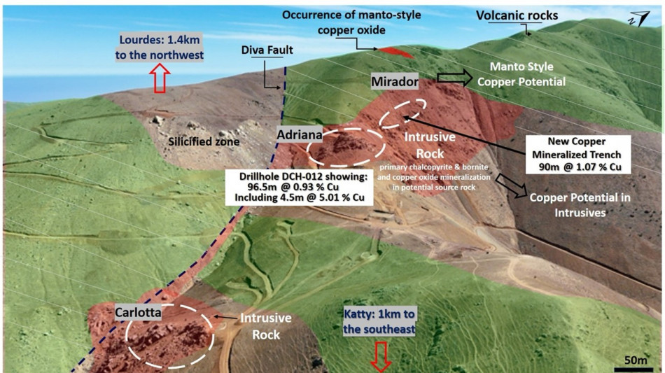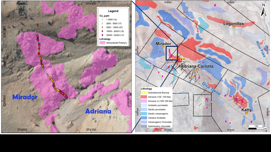 Figure 1. Potential Extension of Adriana Copper Mineralization at Mirador and Katty