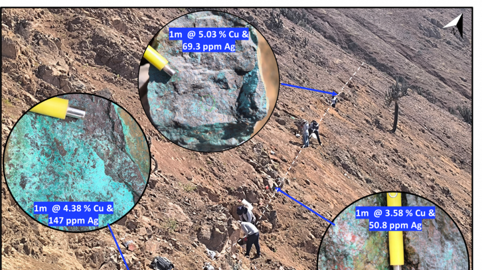 4 meters @ 3.05 % Cu and 86.55 ppm Ag