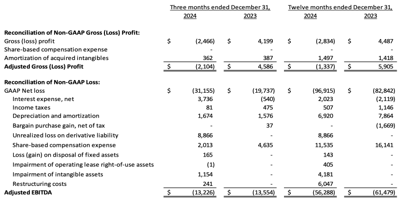 Das bereinigte EBITDA lag im vierten Quartal 2024 bei einem Verlust von 13,2 Millionen $ im Vergleich mit einem Verlust von 13,6 Millionen $ im vierten Quartal 2023.