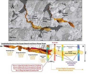 La Compañía ha sido aprobada para recibir hasta 200.000 dólares en financiación gubernamental como parte del Ontario Junior Exploration Program (OJEP), que se utilizarán para avanzar en los trabajos en el objetivo Escape down-plunge de 2,5 km de longitud, donde recientemente intersectó 53 m de mineralización de grado recurso en el primer sondeo de exploración (Figura 1 y comunicado del 20 de octubre de 2025).